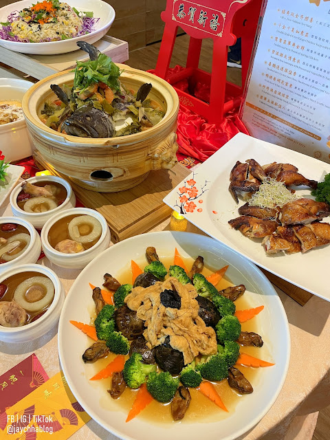 The Lunar Bliss 8 Course Set Menu is available from 16 January until 24 February 2024 except 9 February 2024. There are dish like Olive Tree Salmon Yee Sang, Double Boiled Free Range Chicken Soup with Snow Pear and Dry Scallop, Traditional Style Roasted Spring Chicken, Steamed Sea Garoupa with Preserved Vegetable and Tomato, Braised Dry Oyster, Sea Moss, Mushroom and Bean curd Ties with Broccoli, Wok fried White Prawn with Creamy Butter Black Truffle Sauce and Crispy Bun, Fried Rice with Smoke Duck, Seaweed and Sweet Corn and Chilled Pumpkin Sago and Peach Jelly with Mini Shanghai Pancake in this set menu. The set comes with free flow of Chinese Tea.
